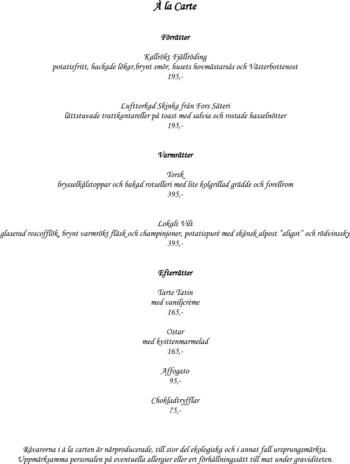 *Har vi inga hotellgäster så håller vi stängt i restaurangen